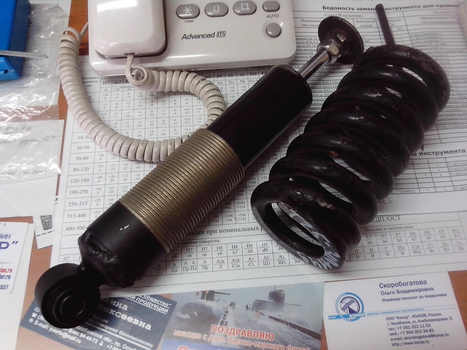 Про тракторную пружину - не совсем она подходит нам по геометрическим параметрам (про усилие сжатия пружины пока сказать ничего не могу). Если под переделку от Нивы ставить, то для того чтобы внедрить сгон сантехнический с гайками, внутренний диаметр тракторной пружины маловат - наружный диаметр у сгона 47мм. Сгон с гайками даст возможность регулировки преднатяга пружины. Да и короче она стоковой миллиметров на 10-15. А если сгон не внедрять, то есть амортизаторы для Нивы с диаметром штока более 12 мм - СААЗ 21214, наружный диаметр патрона у него тоже больше 43,5мм. - опять же не под тракторную пружину.