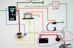 Да крышку снять то не проблема для меня, я и мотор раскидаю если что. Просто провода из генератора у меня вообще не вызывают вопросов! Они то как раз имеют правильные, общепринятые цвета. Специально разъём крупно сфоткал - ну посмотрите - ведь треш полный что с чем соединено! Или интересует вторая коса, которая к блоку зажигания? Ну и пропущенный вопрос, повторю ещё раз - разве может провод на блоке CDI , тот который на всех схемах "масса" , на массу не прозванивается, а прозванивается другой, который на схемах "питание" блока CDI ?