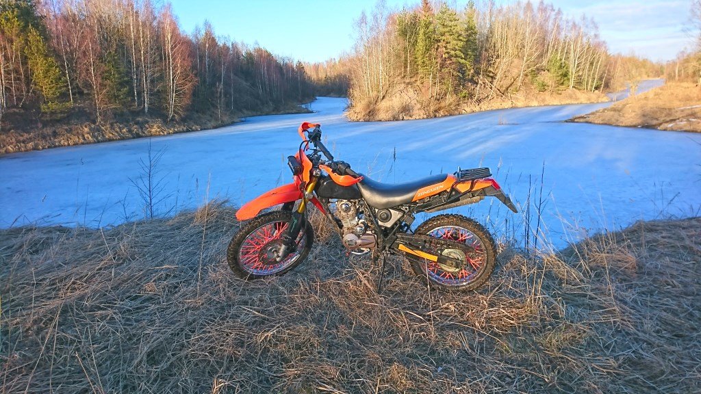 Мотоцикл 2001 года, это двухтактник по мотору получается мощнее чем зонгшен, мотор без электро стартера и акума, с пол пинка заводится и шпарит не плохо, аморты работают отлично,