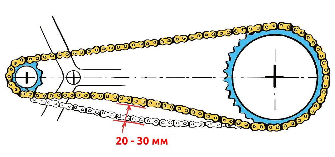 Регулировка цепи мотоцикла1. Для регулировки цепи должна быть определенная на нее нагрузка, поэтому во время процедуры в идеале попросите кого-либо из своих знакомых сесть на мотоцикл. 2. Приготовьте инструменты для работы. Вам понадобятся ключи размером 17х19 и 13х14. 3. Мотоцикл стоит на подставке. Ключом 17х19 нужно отвернуть ось, на которой крутится заднее колесо. Колесо ослабится, и его можно будет передвигать натяжными болтами. 4. Вторым ключом, 13х14, нужно отвернуть контргайки, которые находятся с двух сторон колеса. 5. Наступает непосредственно натяжка цепи на мотоцикле. Чтобы колесо не повело в сторону, регулировочные болты нужно тянуть равномерно. Натягивая цепь, периодически проверяйте рукой, насколько она натянулась. Просто для этого нажимайте на нее с небольшим усилием. Цепь не должна быть сильно упругой. Это может привести к быстрому износу. Свободный ход цепи должен быть 20-30 мм. 6. Если натяжка произведена правильно и достаточно, вначале затягивайте контргайки натяжных болтов. А уже после нужно затянуть вал заднего колеса.
