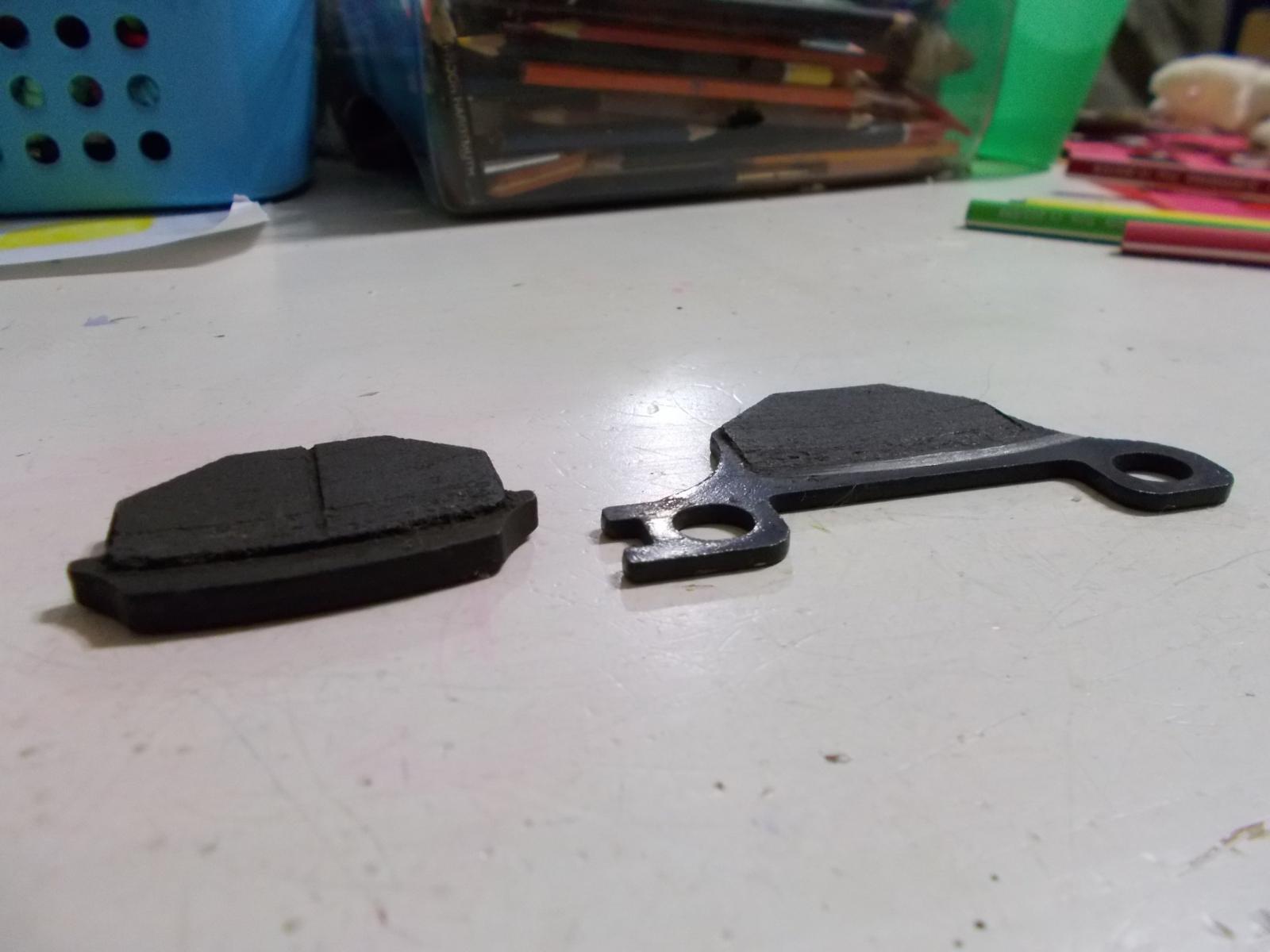 Сегодня в магазине http://www.scooter-city.ruкупил передние колодки за 720р вот в таком пакетике Приехал в гараж и поменял. Правда забыл сфоткать процесс. Но там всё очень просто: открутить два болта, вытащить суппорт, вынимаем старые колодки и в такой же последовательности ставим обратно. Старые колодки стёрлись аж до металла. Проходили 6300км.