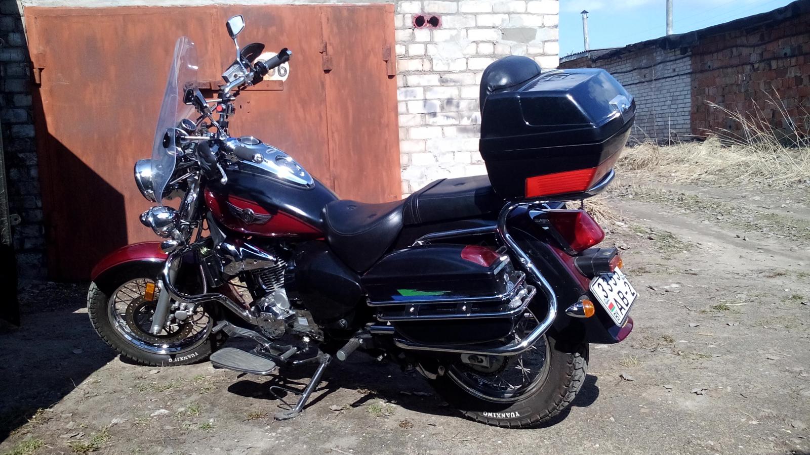 14. Для вступления.Мой начальник попросил прокатиться,разворачивался(медленно) и нажал на передний тормоз!Итог-себе хорошенько повредил ногу,Гарпуше поцарапал дугу,глушак,кофры,зеркало,доп.фару,руль,ветровик.Отдал деньги.Я поменял зеркала,поставил доп.фары с козырьками со светодиодными "ангельскими глазками", пластиковые боковые кофры,задний кофр,защиту от ветра для рук,ветровик и ещё по мелочам.Все с Али.Вышло енотов 250.Вид конечно совсем другой!Не мешало бы сделать защиту для ног,как у Макара,но хочется что-то сильное,а на Али очень дорого!Сам хочу побыстрее забрать свою Гарпушу!!!!