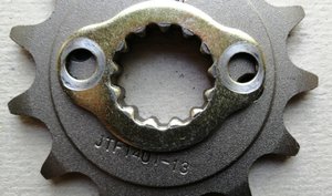 10. Хочу заменить ведущую звезду, поставить на 1 зуб меньше т.е. 13Т Меня не устраивает вялая динамика на 5, 6 передачах. Это конечно громко сказано, тащит согласно паспорта ? На моём крейсере в 90 км/ч по шоссе обороты двигателя примерно 6 тыс., запас по оборотам у мотора ещё есть. Добавить динамики для ускорения или более уверенного движения в подъёмы можно прибавив момента на колесе. Езда даже на сотне мне не комфортная, так что ущерба в максималке на звёздах 13 - 50 я не замечу. Честно говоря, я и не разгонялся до максимальной скорости ещё ни разу. Должна подходить звезда JTF 1401, но я не уверен в этом. Во время инспекции обратил внимание, что за 2 тыс. пробега, штатную звезду заметно подожрало с внешней стороны. С внутренней стороны звезды износа боковины нет. Заметен износ зубов. Материал звезды так себе. У JT сталь легированная, износостойкая. Звезду жрёт цепь из за того, что ведущая и ведомая звёзды не на одной оси. Смещение не замерял, но 4-5 мм примерно есть. Передняя левее задней, цепь идёт небольшим зигзагом. Как с этим у коллег?