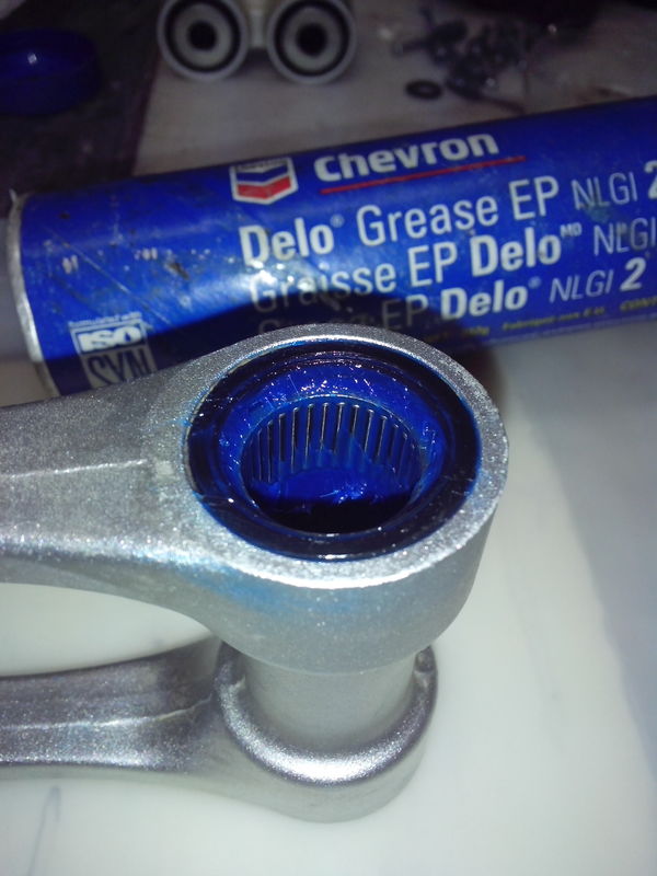 22. Обрабатываем каждое соединение по очереди. Выталкиваем втулку, извлекаем иглы. Промываем всё керосином. Внутри удобно зубной щёткой всё очистить. Продуваем всё насухо. Наносим внутрь густую липкую смазку для подшипников. Лепим иглы на место.