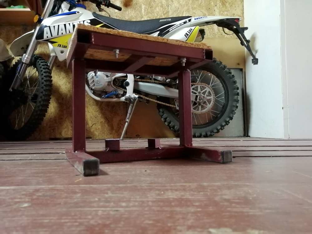 В такой конструкции есть свои плюсы, например можно регулировать высоту подьема, колесо подкатил вставил ось и готово. У меня такого же типа только нашел домкрат гидравлический и направляющих две а не 4. А единственный минус как мне кажется так это скорость подъема, но это не главное в этом!) Оч удобная штуковина, экономит спину))