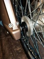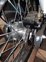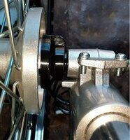 Доброго дня. Вчера начал собирать свой мот, но до конца так и не собрал. Больше времени потратил разбирать (аккуратно) каркас ящика, неужели в Барнауле напряг с саморезами, и отберите у этого сборщика каркаса пожалуйста степлер, замучался скобы выковыривать из деревяшек ))). Это вам не мот собранный и упакованный в китае, после сборки которой остается почти пол пакета винтов и болтов, тут все рассчитано ни одного лишнего болтика. - Глушитель так же покоцан штуцером тормозного цилиндра, пенопласт который они кладут между крылом и колесом не очень то и помогает. Вроде бы сквозного отверстия нет, но это не точно (. - Как обычно в прогрессии смазки так сказать нет, смазал. Сальники целые не коцанные. Возникли вопросы: 1. С датчиком скорости, вроде бы и паз сделали в датчике, но он нормально не вставляется в пипку на пере (фото ниже), да и расположение провода как то не очень надежно думаю будет например если ехать по густой траве (вырвет). 2. Куда вставлять эти резинки в проводе дачика скорости? Предварительно одну расположил в нижней части в районе крепления 2мя винтами пластикой защиты пера, обвел на фото. В самом пластике таких пазов нет. Разобрался есть в пластике паз 2 ой сверху. 3. Ось переднего колеса как я понимаю вставляется со стороны тормозного диска, не то на фотах с тырнета у кого как. 4. Две широкие стяжки в пакетике для чего? Предварительно стянул с ними провода на руле. 5. Под сидением в выемке для инструмента должна быть какая нибудь резиновая стяжка? У меня ничего нет.