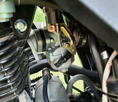 Немного "колхозинга", ну не люблю я тянуться к карбюратору. Сперва хотел купить блок переключателей с подсосом, но подумал возьня с проводкой и решил пока так попробовать. Пластиковая крышечка (куда я установил ручку подсоса) так же была установлена с зазором, сама железка куда все это крепится сварена криво. Пружинка которая ставится на карб оказалась слишком туговатой. Подсос так и наровить обратно сам спуститься в 1ое положение. Пока вышел из ситуации - дернул подсос и немного повернул в право. Вместо стандартных 3ех положений у меня теперь 4.