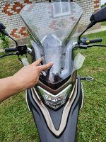 Как думаете, если лобовое так установить будет норм. Мой рост 180 см. Если ниже спустить, то зеркало левое задевает. Выше поднять, то уже нижние отверстия лобового будут в канавке родного козырька-лобовика.