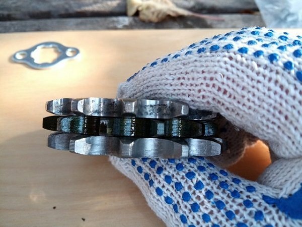 Завершил ранее начатые (в принципе ненужные) работы. 1. Сальник КПП. Был приобретен комплект сальников Motoland на 169fmm (320 рублей). Старый сальник был извлечен при помощи тонкой отвертки и самореза. Какого-то спец-инструмента у меня для этого нет, навыков этих нет, но делал осторожно. Тем не менее отвертка оставила на валу КПП неглубокие засечки. Интересно, из какой марки стали сделан этот вал? Сальник поставил при помощи оправки, легонько простучал. На мой взгляд, посадочное место сделано не очень хорошо, т.к. при желании можно установить сальник с перекосом, под ним нет никакого ограничения по глубине установки. После тестовой поездки 100 км заметил опять запотевание в районе этого сальника. Склоняюсь к мысли, что это набрасывает с цепи остатки смазки. Каких-то капель и ручьев замечено не было. Впрочем, ранее я не замечал и запотевания. Не знаю. Заводской сальник на вид изнутри выглядел неплохо. Думаю, что можно было и не менять вовсе. 2. Заменил масло. Залил остатки французской минералки Igol 15w-40, которое заливал все время с момента покупки. Вошло как обычно около 1 литра, при закрученном щупе получается чуть выше верхней риски. Переливать не стал. После замены масла поигрался с регулировкой сцепления - выставил свободный ход, сцепление у меня схватывает ближе к концу при отпускании рычага. При выжатом сцеплении мот можно катить на передаче достаточно легко, но все же не так легко как на нейтрали, но вроде ничего не прихватывает, пробовал в разных положениях преднатяга кулачка. В первые 30 км тестовой поездки передачи включаются снова нормально. После 1-2 часов поездки опять начинаются нечеткие включения перед остановкой на светофоре или на ходу при необходимости сбросить с 5-й до 3-й или 4-й до 2-й - иногда тыкаешь и не понимаешь, какая в итоге включилась, если не смотреть на индикатор. Вот это дело уже подбешивает - в некоторые моменты нужно быстро переключиться, а начинаются танцы на педалях с зависанием на перекрестке. Кто-то здесь рекомендовал заливать масло погуще. Но в этом ли дело? Попробую весной залить 15w-50? 3. В прошлый раз решил помыть цепь, которую только смазывал с покупки и ни разу не мыл. Для этого решил снять. После возни с замком, промывки и осмотра цепи, решил прикупить новую - чего уж там. Выбирал сначала по нескольким магазинам живьем - нигде нет на 102 звена, есть только с бобины и по нереальной цене, без замка к тому же. В итоге купил онлайн, пришлось подождать. Выбор пал на дИдовскую D.I.D сальниковую 520VO (O-ring, серая стальная, со стандартным замком) - оригинал, отзывы на эту модель хорошие, цена 5 400 рублей. В общем-то я не вижу большого смысла в сальниковой цепи при моей больше дорожной эксплуатации, но решил попробовать. Благодаря сальникам в руках она еле шевелится - такое ощущение, что она будет забирать пару лошадей на себя. 4. Где новая цепь - там и новые звезды. Родную звезду в прошлый раз не осмотрел особо и не замерил, поэтому перед покупкой ведущей звезды почитал наш F.A.Q. Однако звезду JT решил не покупать, хотя вроде и не дорого особо, но не был уверен в том, что все-таки буду менять родную, надо было еще раз осмотреть. Тем не менее, купил онлайн аж две звезды на выбор: 520-13T Motoland 20 мм закаленный зуб (600 рублей) и набор 520-13Т с плашкой и крепежом No-name (500 рублей). По описанию размеры были вроде наши. Также видел в продаже звезду, очень похожую на нашу завод