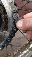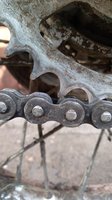 Цепь дугой падает не держит как линейка. Ощутимый люфт в каждом звене. Не помню откуда сохранял: износ цепи 520 : расстояние между 18 осями должно быть 272мм, больше - износ. У меня на 5мм длинее цепь на длине 18 осей. Переднюю звезду уже заказал на 13. Боюсь не разочароваться если 42 зуба на зад купить будет 3,23 передаточное. А было 3. Езжу всё устраивает.