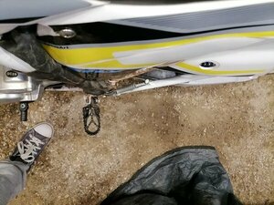 Подпилил подставку и её упор теперь складывается почти под пластик. Плюс переварил шпенёк для пружины в другое место, теперь ничего не выпирает и я не задеваю её мотоботом. Сделал вторую точку крепления банки прямотока. Болт крепления сидушки заменён на барашек а под ней, за аккумулятором прописалось кое-что из походного инструмента. Рюкзак заметно облегчился. Сорвалась резьба крепления в подрамнике - шестигранником крутил г-образным, почти без усилия...Рисовый рис. Нужно будет восстанавливать.