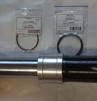 Не знаю насколько эта конструкция обычна, но менять сальник я ещё раз не хочу. В процессе порвалось колечко, напробовался разных, итог: 47х2 - очень туго (48х2 даже с нагревом не полезли). Стакан удерживается на трубе стальным кольцом в одну сторону и стопорным сальника в другую, "на руках", без упора, поставить сальники, даже фирменной колотушкой не получилось. Тефлоновые направляющие купил на "Regulmoto" - такое же говно что и на али. Что в стоке, что в магазе - зазор полторы десятки, и судя по следам обработки (черновая/ускоренная) на пере - смысла подбирать направляйки никакого нет. С установленным сальником определить люфт не удастся. Насколько "всё плохо"? На верхних направляйках тефлон цел, а медь выточена, на пере, над направляйкой, затиры.