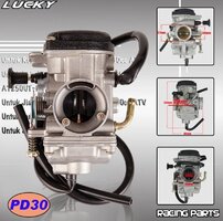 Здравствуйте любители китайского автопрома,хочу я значит поставить другой карб на свой Мот движок:172fmm родной карб Nibbi PE30 планирую вакуумник pd30 с али скажите кто уже ставил или делал подобное стоит ли оно того или нет? И надо ли будет заморачиваться с настройкой этого карба штатный не устраивает так как свеча все время черная и провал при открытии газа больше середины ручки игрался с жиклерами и иглой нихера не помогло и расход топлива не нравится бак уходит бодро короче для этого надо купит сам карб с Алика комплект мембран 2-3 шт и патрубок какой то переходник так как на родные крепления может не стать и да тросик газа видел отличается на pd30 говорят можно обточить. Вот размеры моего родного карба и PD30.
