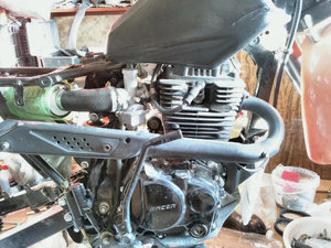 Ну и фото 250куб движка, на котором в конце сезона полторы тысячи уже намотал. Ох, непросто его с кика завести по сравнению с родным. Один кик согнул по неопытности.